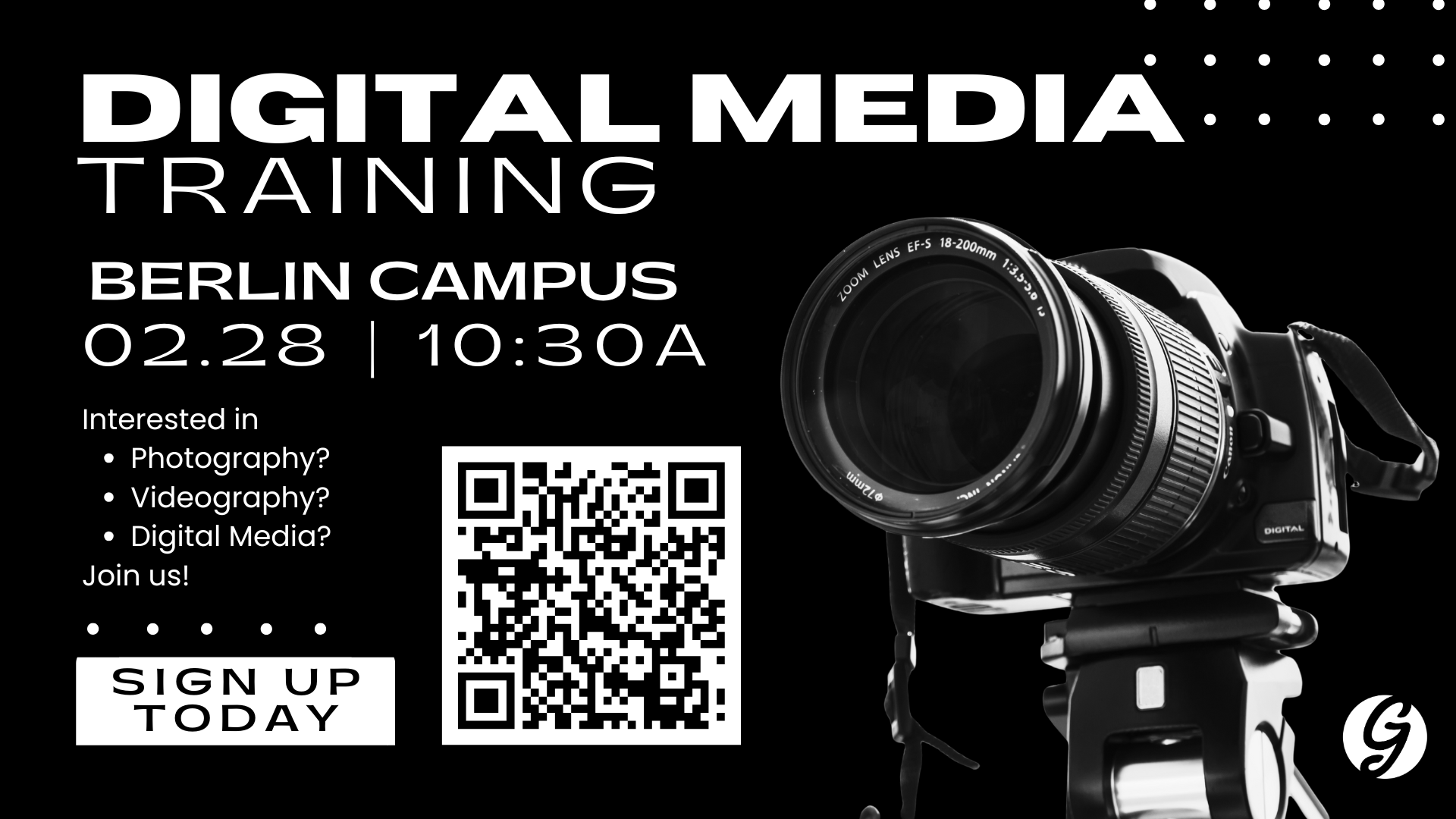 Have a passion for photography or videography—or simply want to learn how to capture meaningful moments? Join us at the Grace Church Berlin Campus for a Digital Media Training designed for all campuses and anyone interested in using media to tell stories that glorify God.